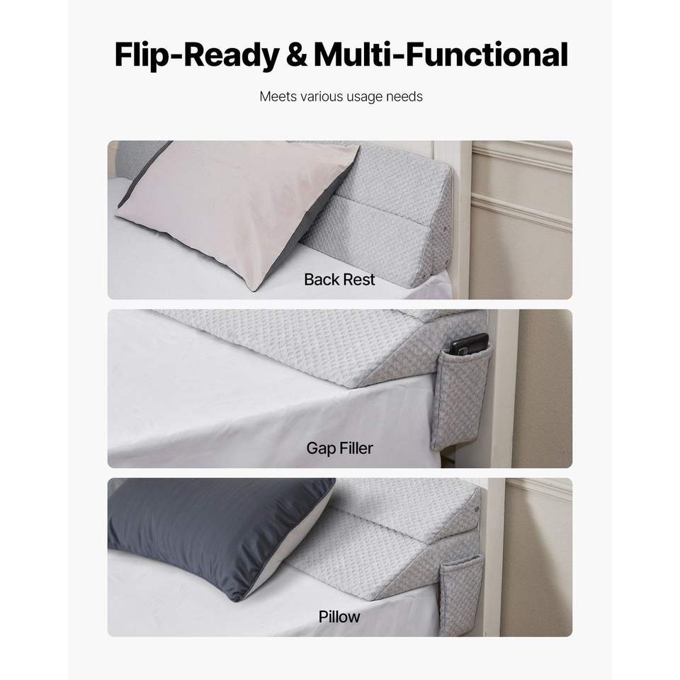 76"x10"x6" Bed Wedge Pillow for Headboard Reading & Bed Rest Gap Filler That Fills 0-7" Gap
