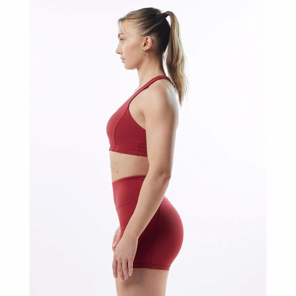 78% Nylon 22% Elastane U-NECK Lightweight Front Logo Bindingless Hem Womens Medium-Support One Piece Solid Sports Bra