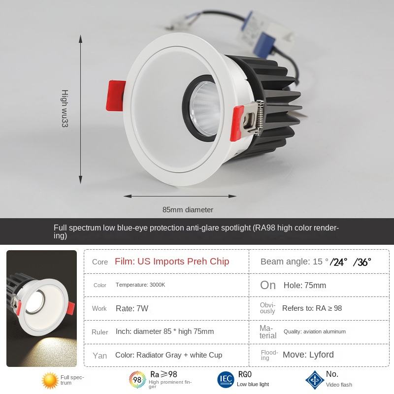7W Round Anti-Fog Ceiling Light with Narrow Frame 3000-6500K Anti-Glare Die Casting Aluminum AR111 Base Downlights