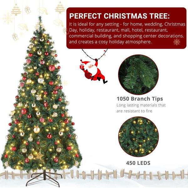 7ft Automatic PVC Material Tree Structure 450 Warm Lights and 1050 Branches 8 Modes Green Christmas Tree