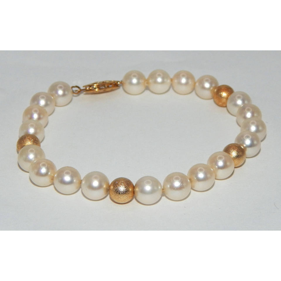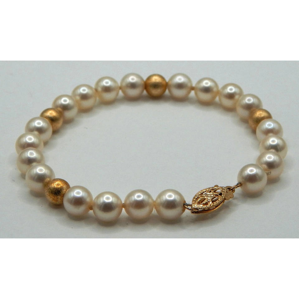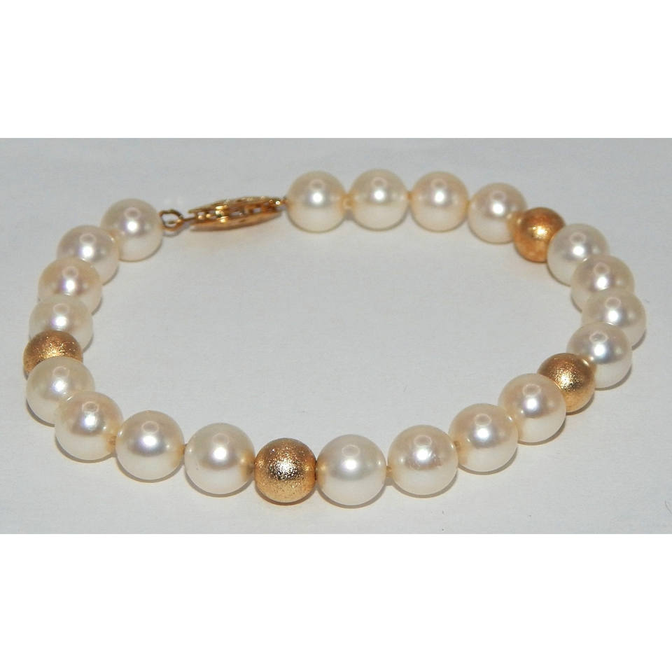7mm Cultured Pearl Bracelet with Brushed 14k Gold Beads