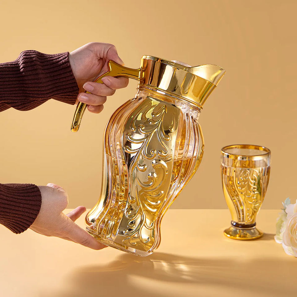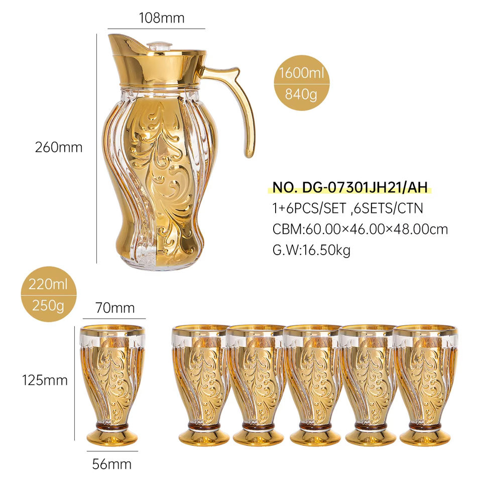 7pcs High Quality Gold Plated Engraved Glassware Set American Style Customized Logo Portable for Tea Water Halloween Christmas