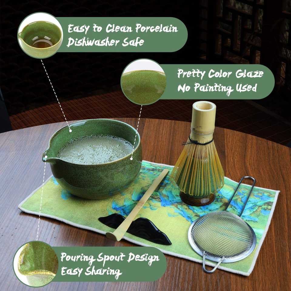 7pcs Matcha Tea Whisk Set Includes Whisk Japanese Bowl Sifter Holder and Strainer Kit Matcha Set
