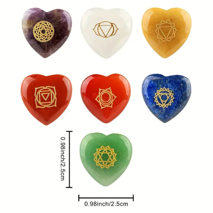 7pcs/Set Seven Chakra Love Heart Shape Reiki Stones Gems Suit Crystal Energy Stones Lapidary Meditation Stones Crafts Yoga