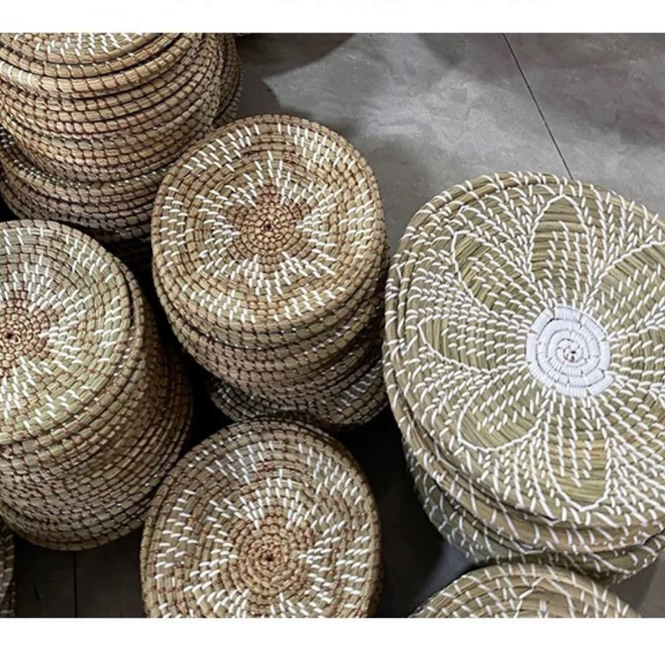 7pcs Set of Handmade Boho Seagrass Wall Vase Decor Traditional Design Straw Woven Plates Baskets Home Room Art Decor