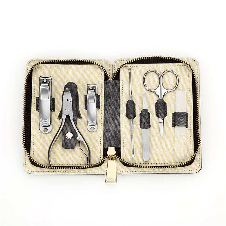 7pcs Stainless Steel Professional Manicure & Pedicure Tool Set With Zipper Leather Case