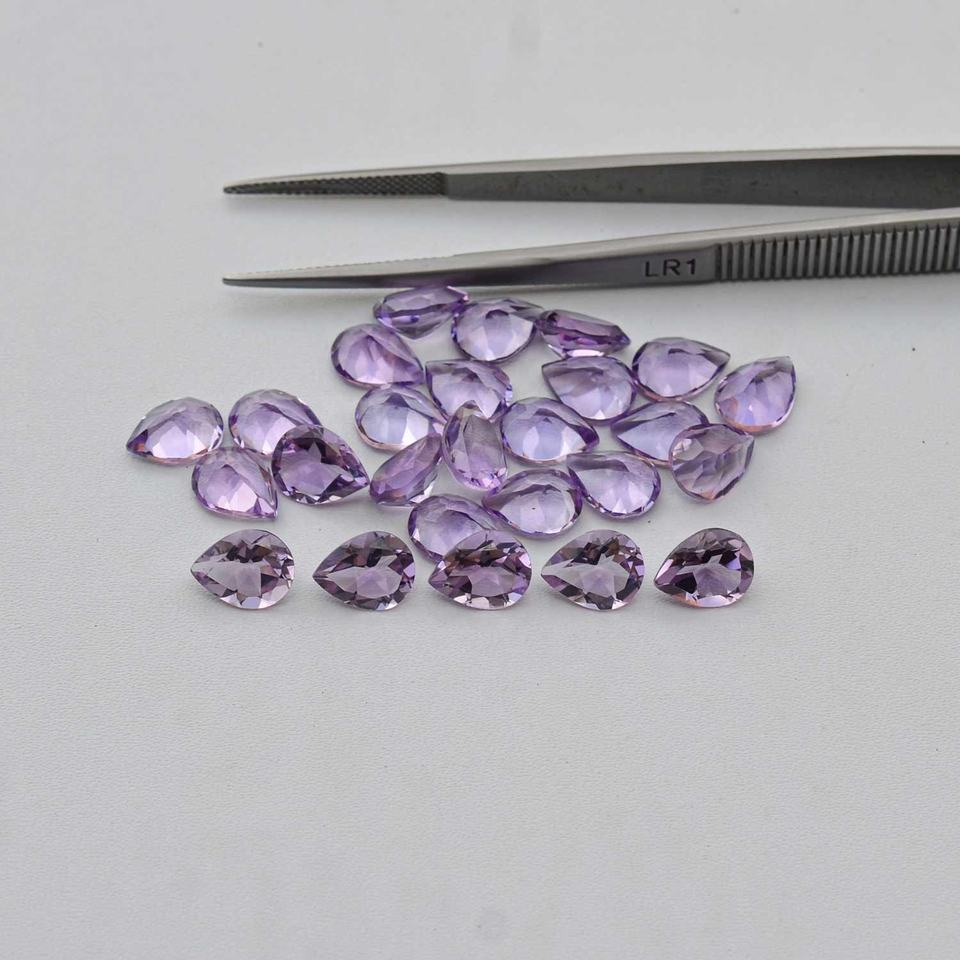 7x10mm Natural Light Pink Amethyst Faceted Pear Cut Loose Gemstone AAA Grade Handmade India Third Party Certified Ring Pendant
