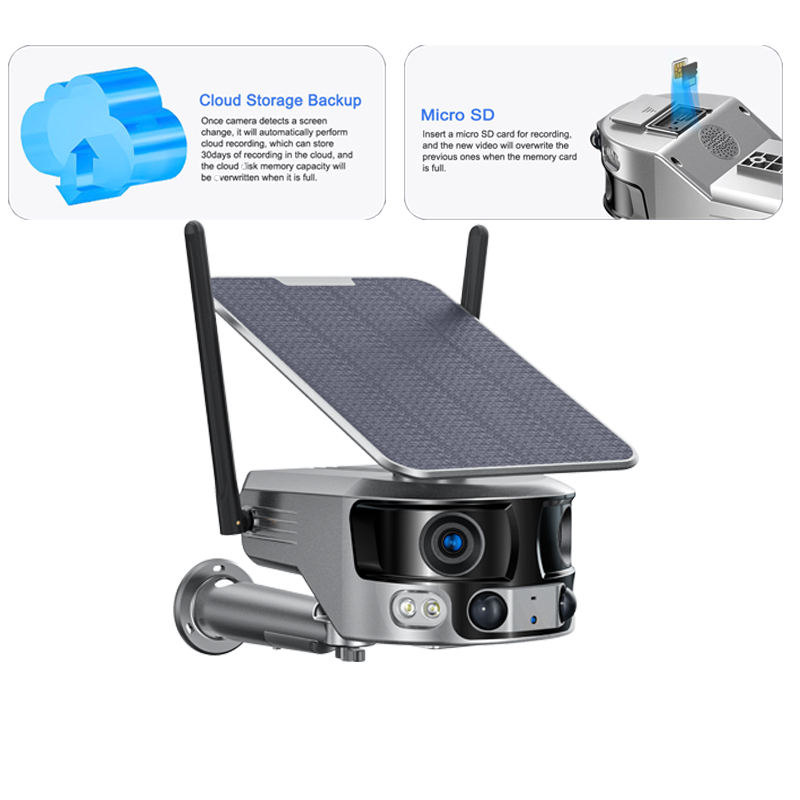 8.0MP Zoom Outdoor Security Solar CCTV Camera with 4G Dual Lens 180 Degree PTZ WiFi Connectivity Alarm Linkage