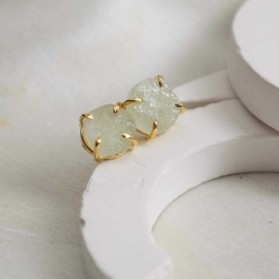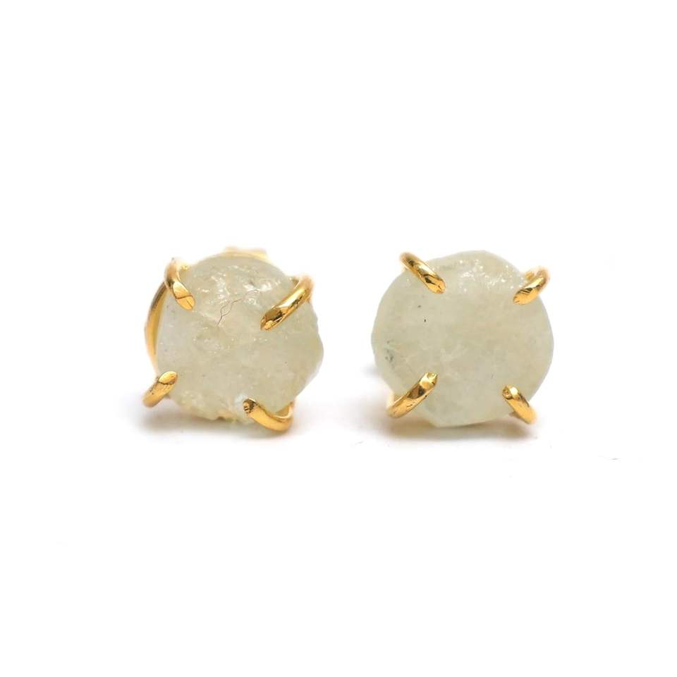 8-10mm Raw Aquamarine Stone Gold Plated Prong Set Stud Earrings Handmade Birthstone Dainty Minimalist Jewelry for Women