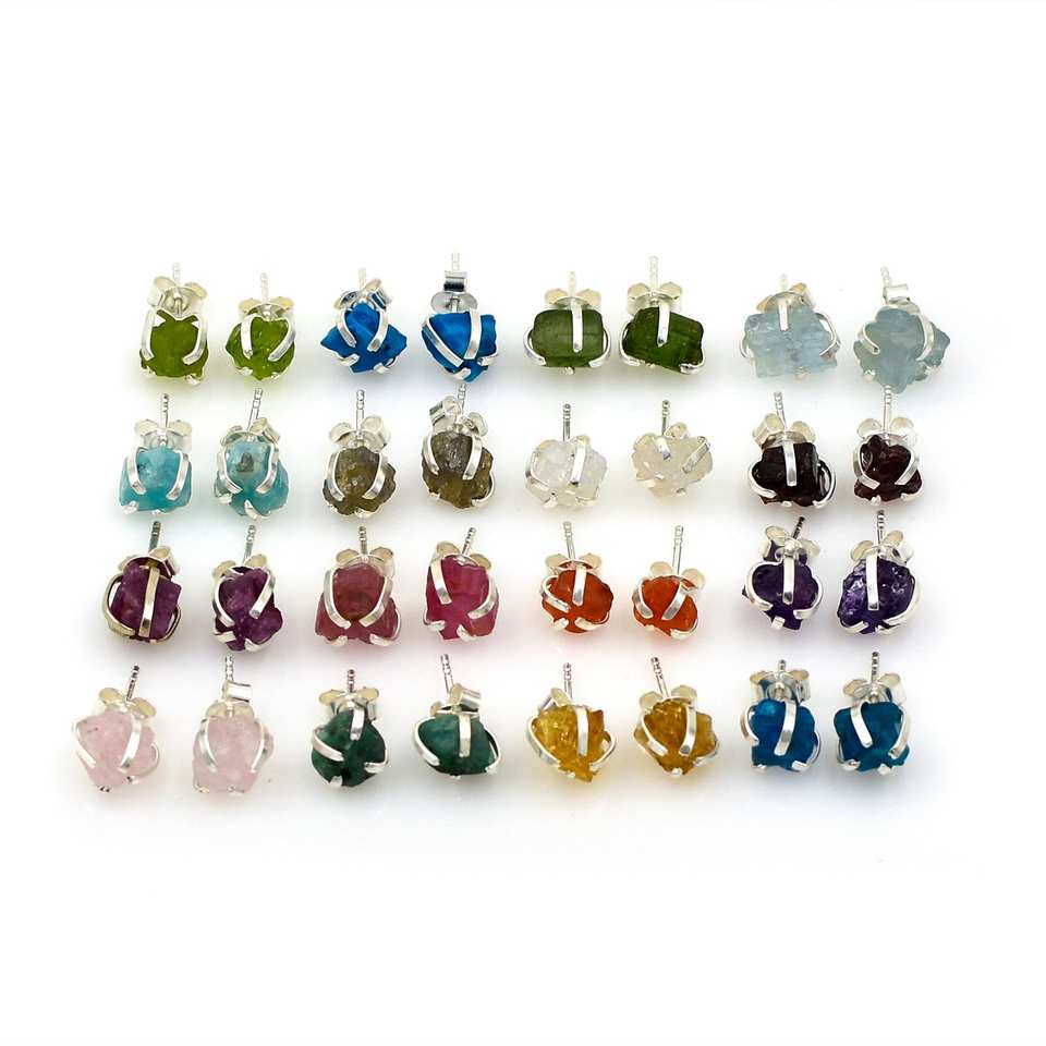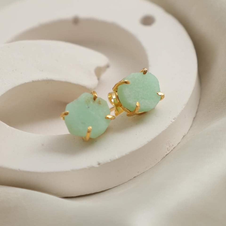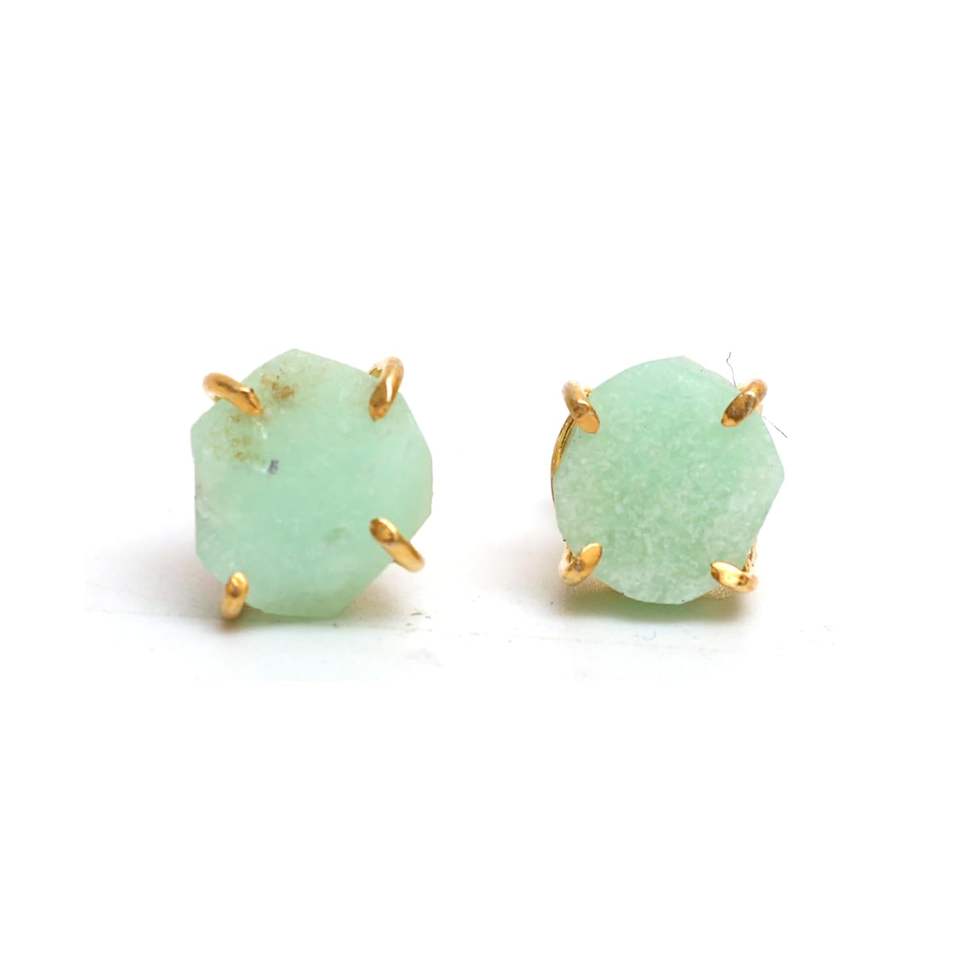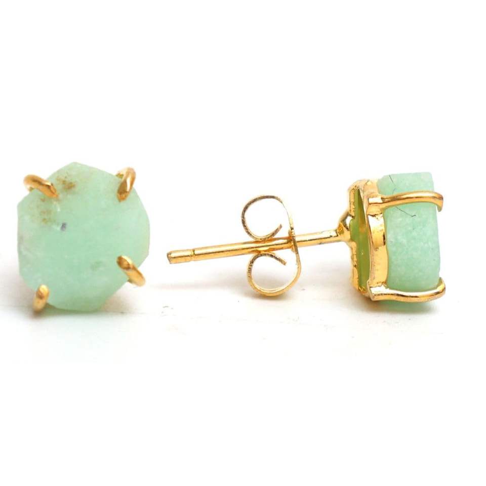 8-10mm Raw Chrysoprase Earrings Artisan 925 Sterling Silver Birthstone Studs Classic Gold Plated Jewellery for Gift