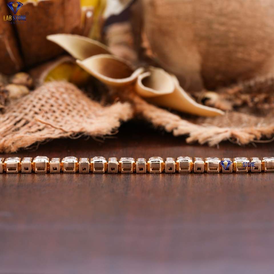 8.46 TDW Emerald & Princess Cut Diamond Yellow Gold Bracelet by Labstone Dainty Heartshine Bracelet EF-VS Color