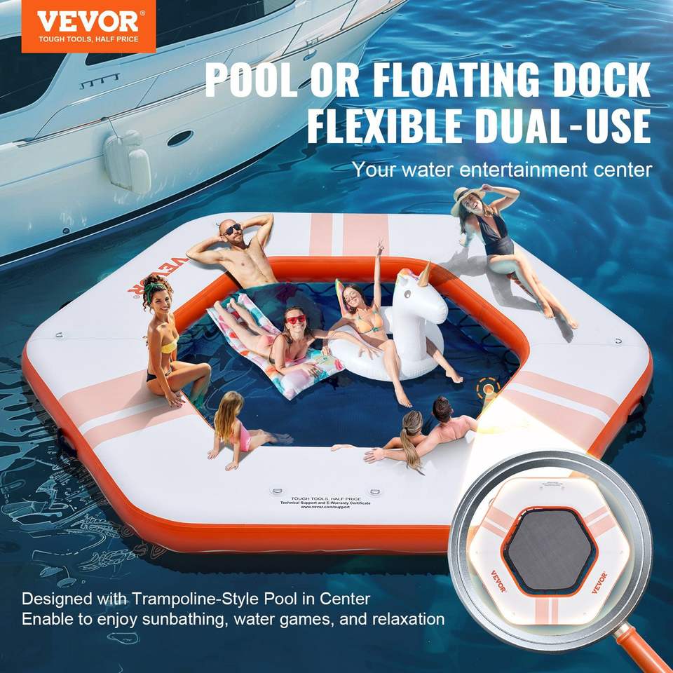 8.5FT Inflatable Floating Dock Platform 5FT Non-Slip Water Mat with Trampoline Mesh Floating Dock for Pool Amusement