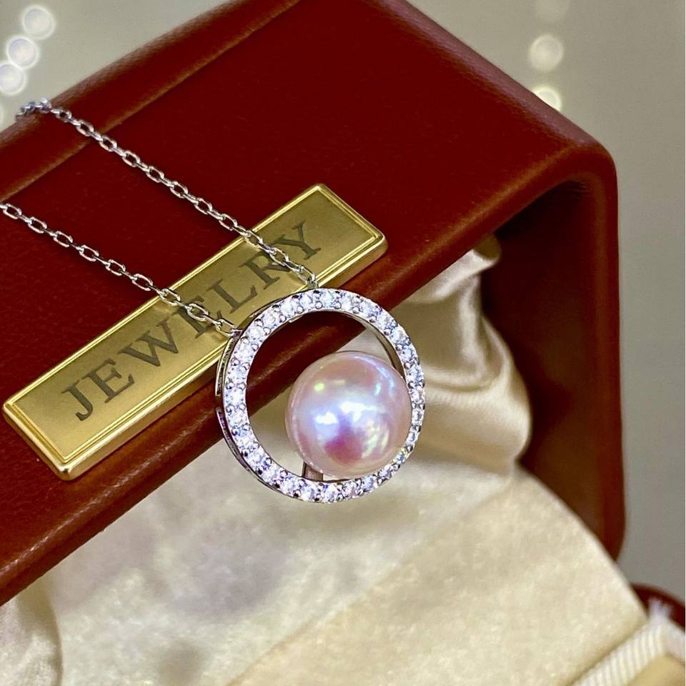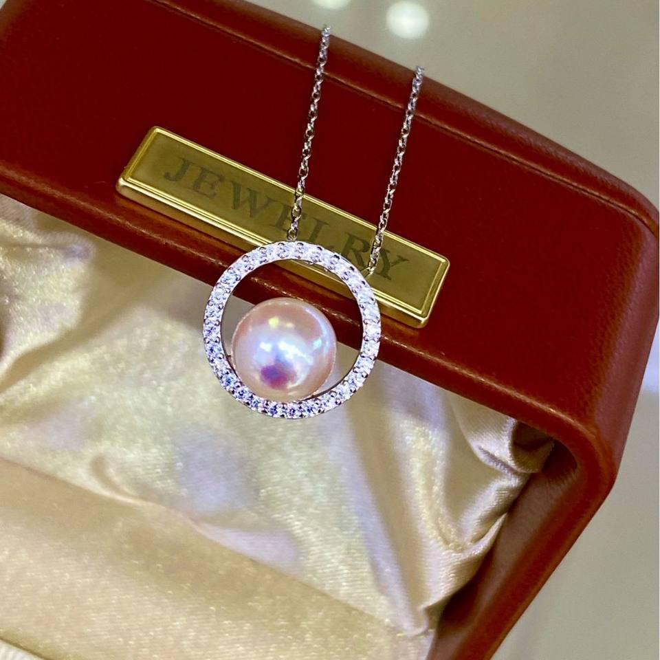 8-8.5mm Seawater Akoya Pearl Pendant Round Aurora Pendant 18K Diana Collarbone Year of Snake DIY Necklace Pearl Pendants Charms
