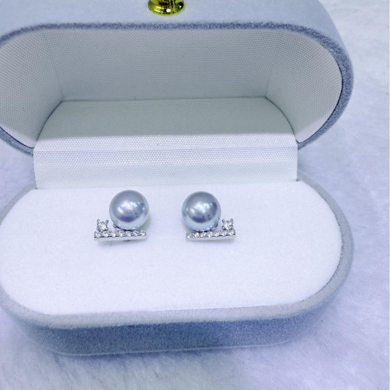 8-9mm Sea Water Pearl Earrings Versatile Classic Luxury Genuine Hemp Pure Silver Light-Parallel Wood 100% Genuine Pearl Jewelry