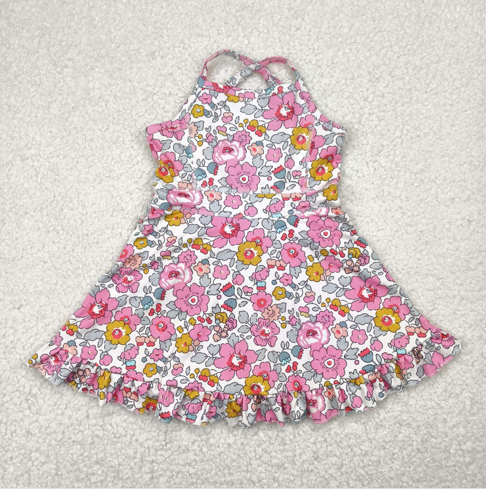 8 Colors Baby Girls Straps Sports Wear Yoga Athletic Ruffle Knee Length Dresses Children Yoga Clothes