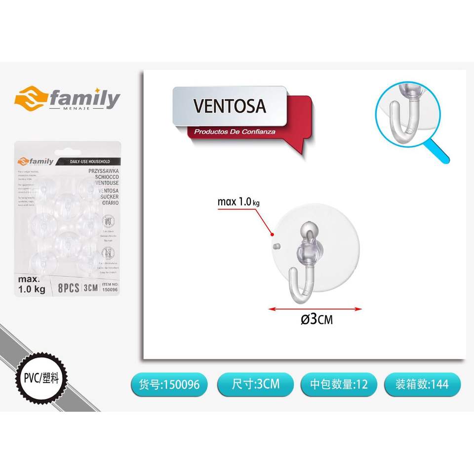 8 Count 3cm Clear Suction Cups Bathroom Robe Hooks & Accessories