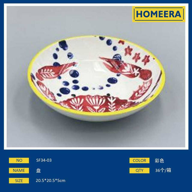 8 Inch 205x205x5cm Ceramic Soup Plate Colorful Design Customizable Pattern for Hotels Low MOQ for Bulk and Wholesale Orders