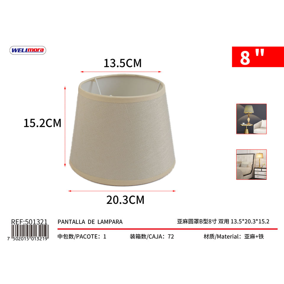 Shirong Linen Beige Round Lamp Cover 8 Inch Dual Use Type B Shade