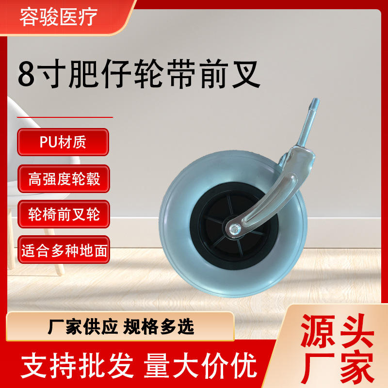 8 Inch Pu Fat Wheel With Front Fork For Wheelchair Replacement Parts