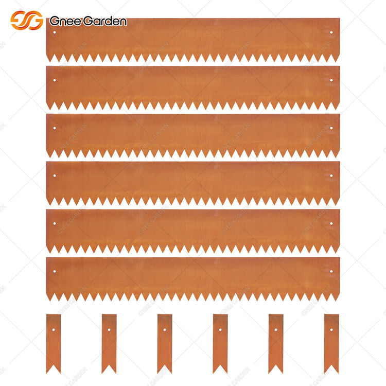 8 Inch Weatherproof Serrated Corten Steel Garden Bed Edging 6 Pieces Rustic Border Corrosion Resistant Easy Install for Lawn