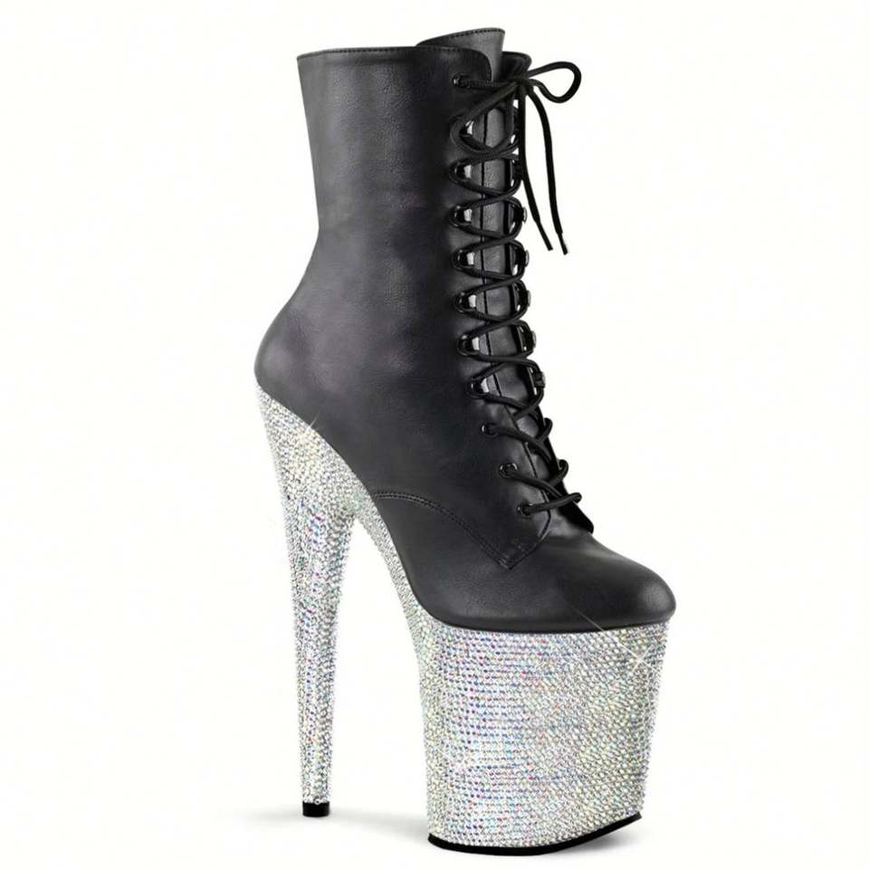 8 Inches 20cm Black Lace Pole Dance Shoes Rhinestone Platform Sexy Fetish Summer Fashion ABS Ankle Boots Nightclub Models