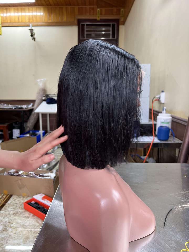 8 Inches Bob Wig Vietnamese Human Hair Natural Color Bone Straight Glueless HD Transparent Wigs Training Heads Black Women