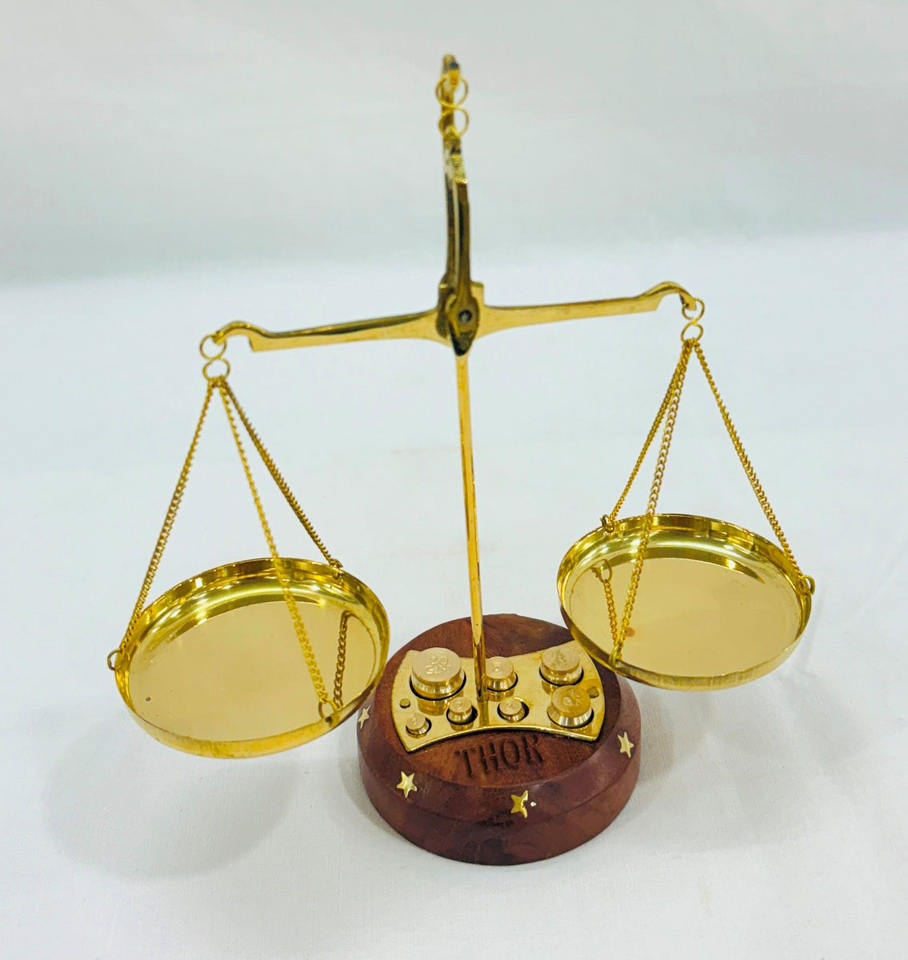 8 Inches Graceful Brass Antique Weighing Scale Balance Justice Law Scale Decoration Divine Item Jewellery with Complete Weight