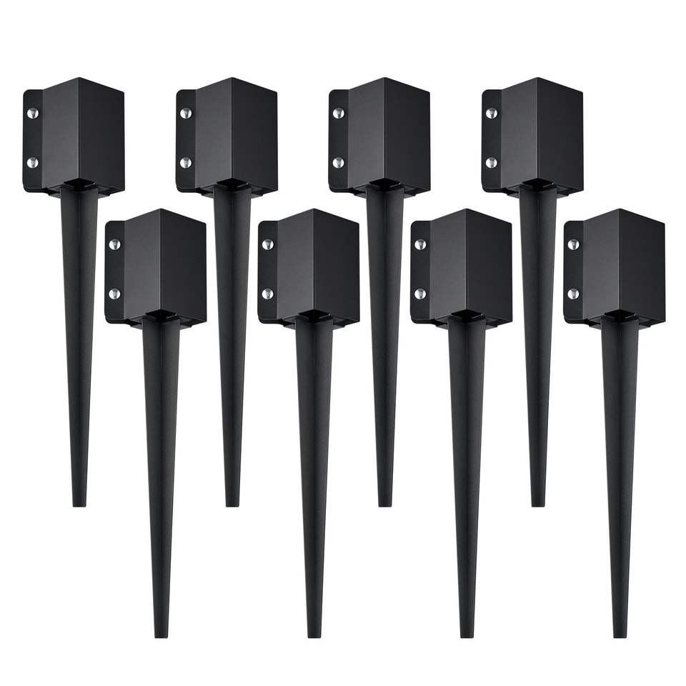 8 Pack Black Powder Coated Metal Fence Post Anchor 24 X 4 X 4 Inches Outer Diameter 3.5 X3.5 Inches Inner Diameter Ground Spike