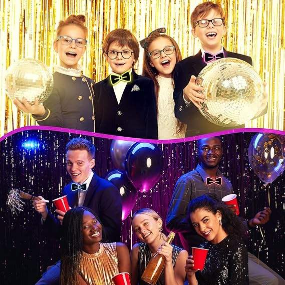 Light up Bow Tie for Men Adjustable LED Neon Bowtie Glow in The Dark Clothes Rave Accessories Funny Party