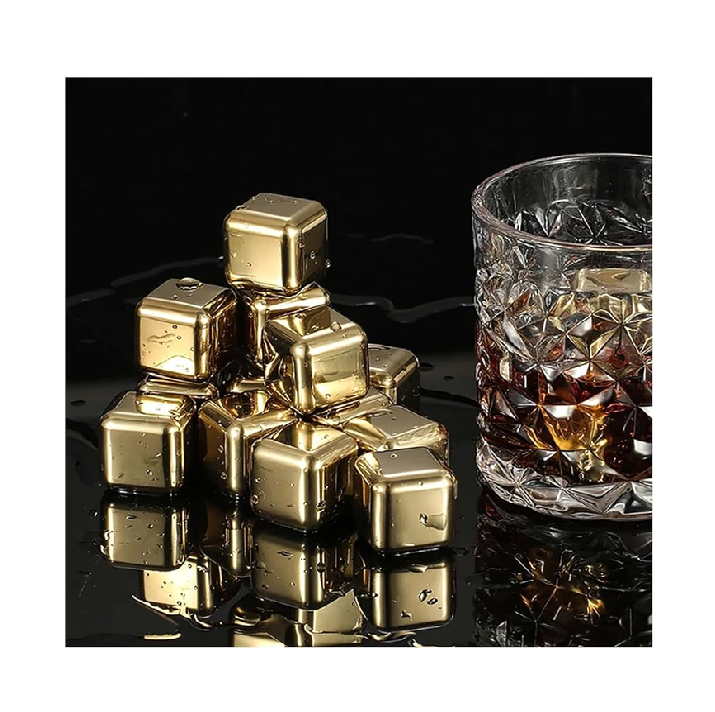 8-Pcs Set Gold Stainless Steel Ice Cubes with tongs for Whiskey Premium Metal Ice Cube hot sale