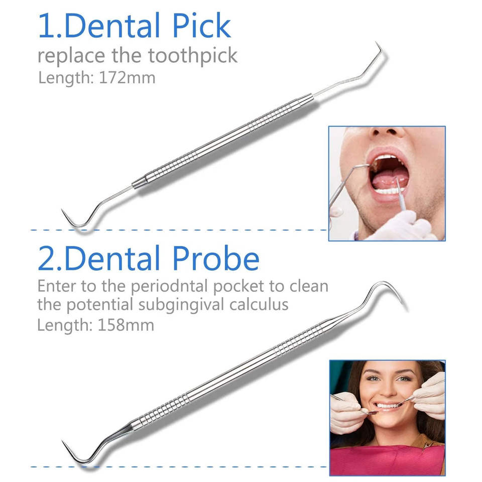 8 Pcs Teeth Cleaning Tools Tartar Remover Tooth Plaque Scraper Dental Pick Dental Hygiene Tools Set With Zipper Bag By Dentavex