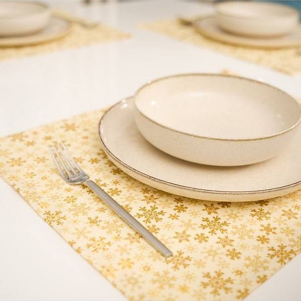 8 Piece 100% Cotton Yellow Placemat Set with Snow Pattern Decorative Table Mats 35x45cm Durable Elegant Dining Table Accessories