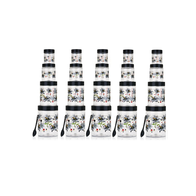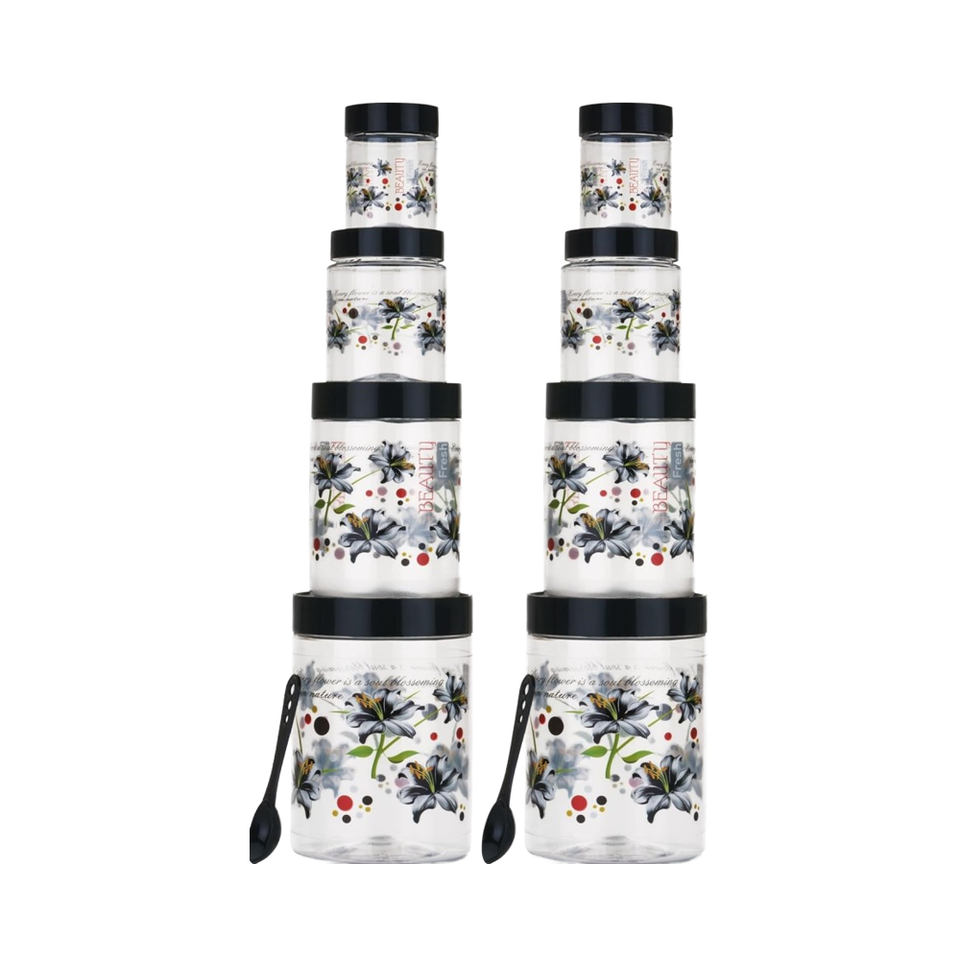 8-Piece Black Airtight Plastic Food Storage Jars Printing Eco-Friendly Large Capacity Rectangle-Shaped Zipper Lid Set