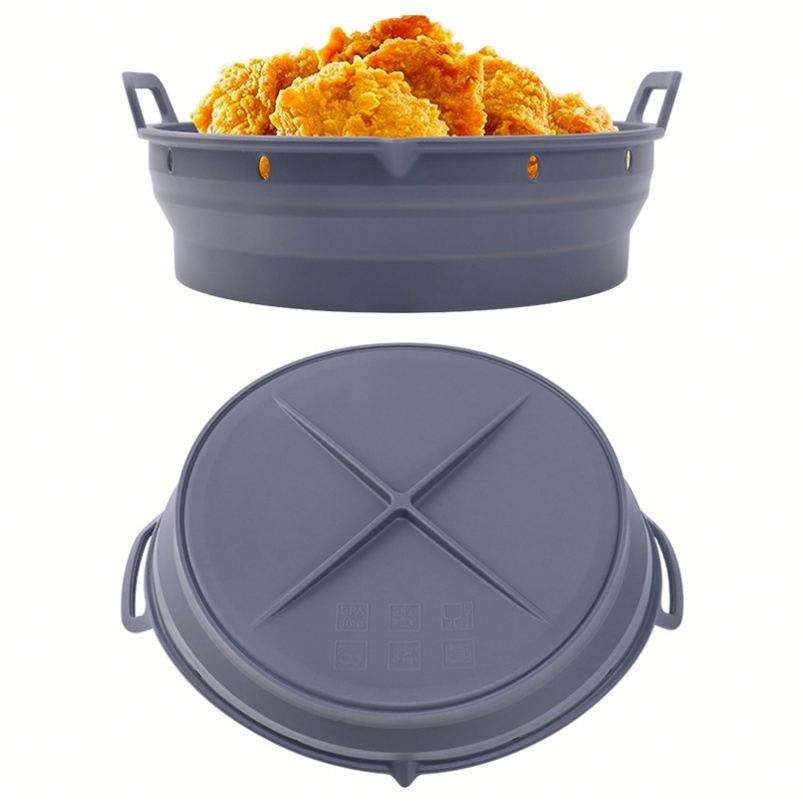 8.5" Round Silicone Air Fryer Liner Reusable 2mm Non-Stick Grey Dishwasher & Oven Safe Foldable Silicone Baking Pan