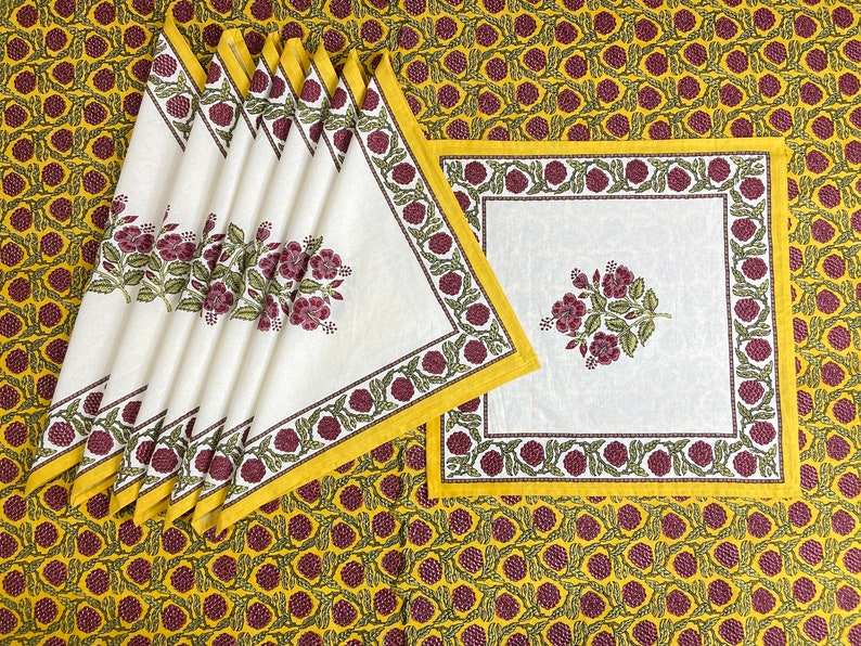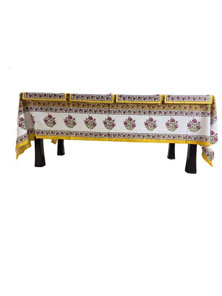 Handmade 8-Seater Rectangular Floral Indian Block Print Cotton Tablecloth with Napkin Set Jaipur Dining Table Cover