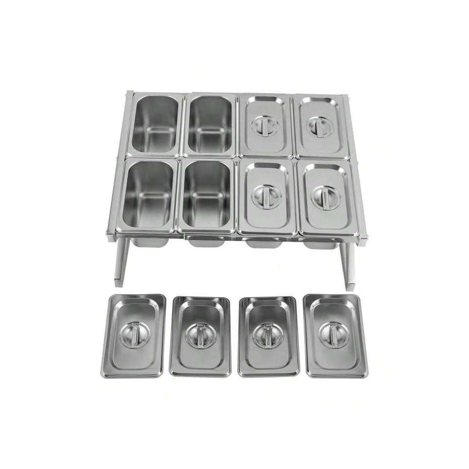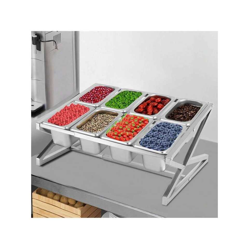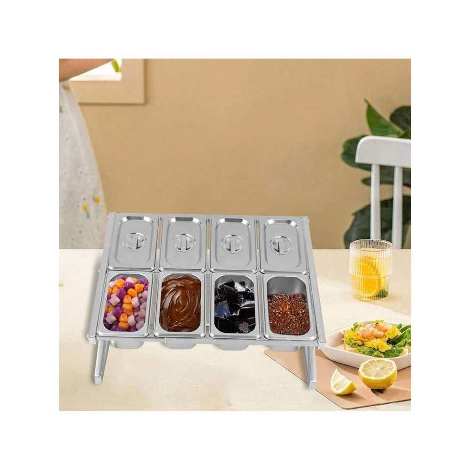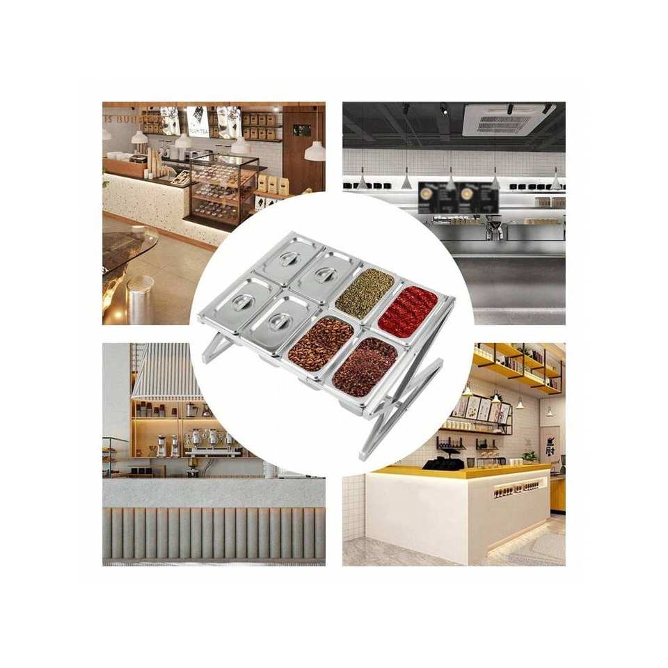 8-Slot Stainless Steel Silver Detachable Spice Rack Organizer with Printed Logo Kitchen Storage Shelf and Lids