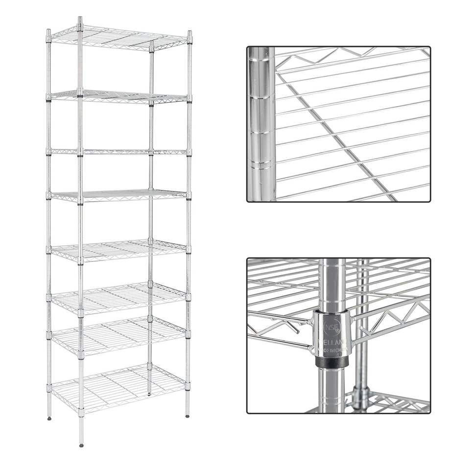 8-Tier Adjustable Steel Wire Rack Chrome YJ Garage Shelves Wire Shelving Unit