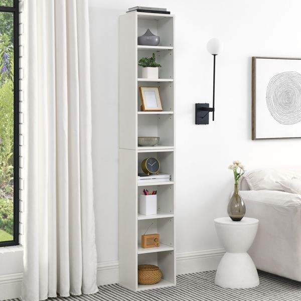 8 Tier Media Tower Rack Adjustable Shelves CD DVD Slim Storage Cabinet Tall Narrow Bookcase Display Bookshelf for Home Office