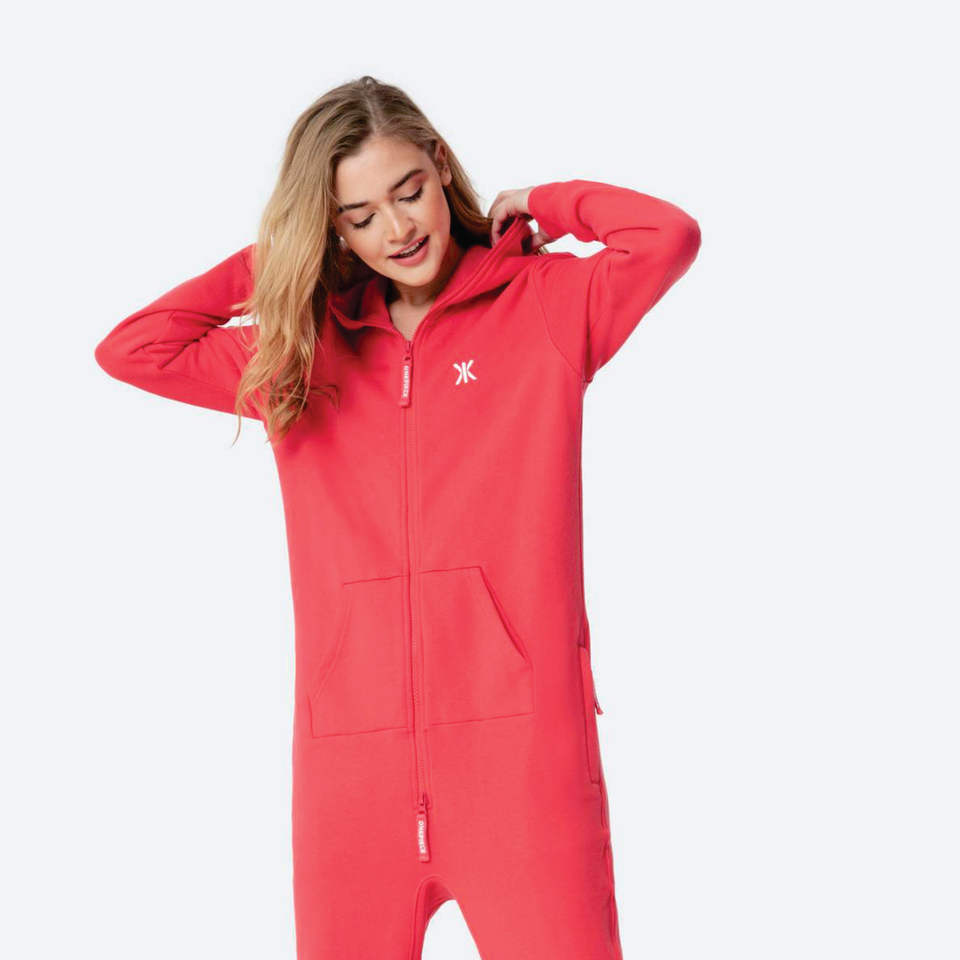 80% Cotton 20% Polyester Brushed Back Cotton on the Inside Two Way Quality Zipper Bright Red Unisex Original Onesie