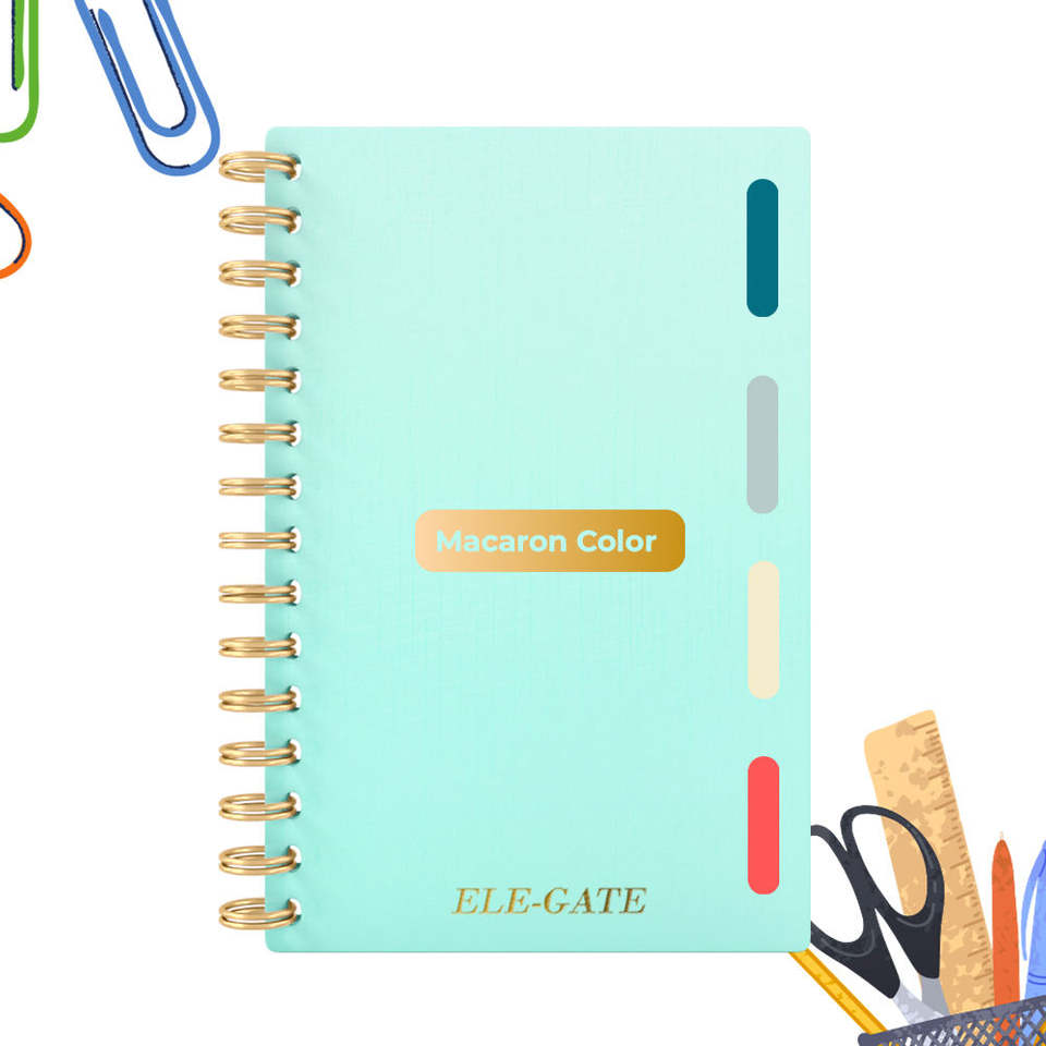 A5 Spiral Bound Lined Notebook with 4 Colored Dividers, 80 Sheets, Paper Cover, Digital Printing, ELEGATE Brand, Ideal for Schoo