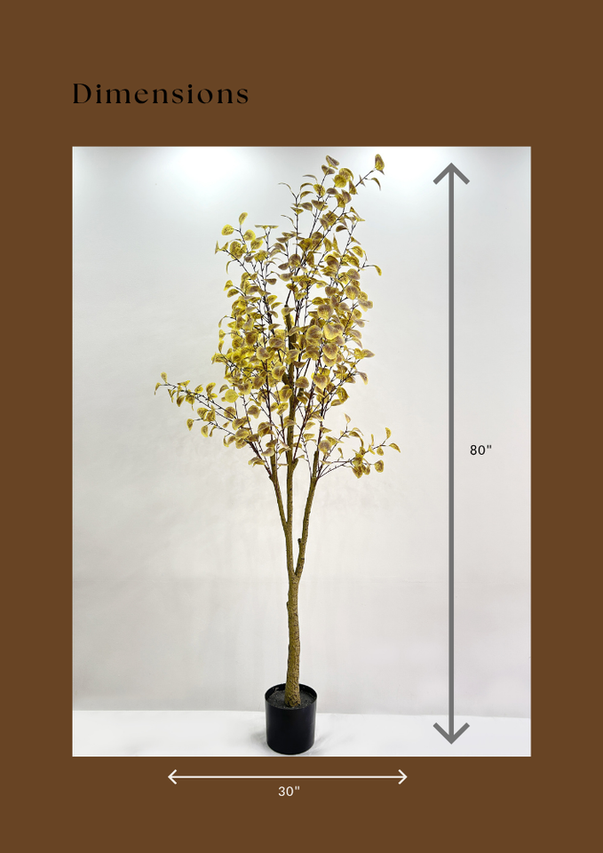 80" Tall Real Touch Indoor Decor Artificial Ficus Tree Plastic Pot 30" Wide Polyester Iron Wire Construction for Housewarming