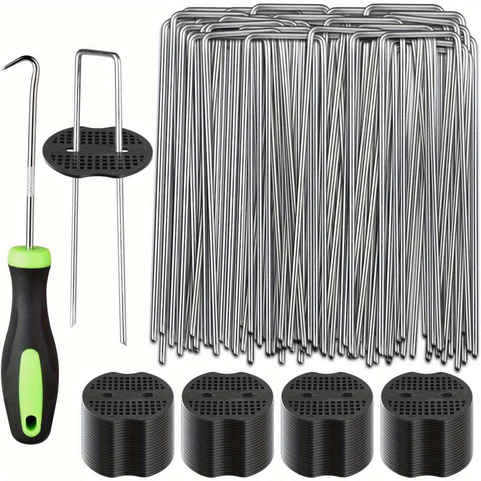 80 U-Shaped 6-Inch Landscape Ground Stakes with 80 Fixing Washers and 1 Hook Stake Fastening Fencing Products