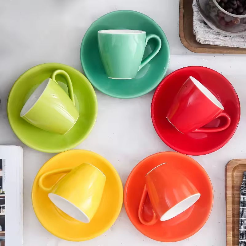 80 ml Modern Durable Minimalist Glossy Glaze Ceramic Expresso Coffee Cup and Saucer Set