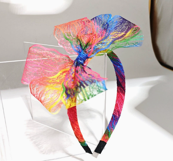 80's Neon Lace Bow Headband New Arrival Reusable Plastic for Halloween Costume Accessories No Headache 80s Theme Party Hair