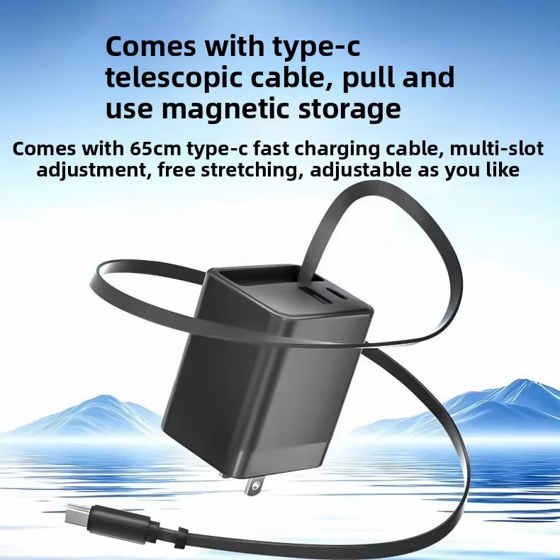 80W Type C PD Charger A+C Ports Power Adapter with Stretchable Cable Phone Charger for iPhone Android Earphone