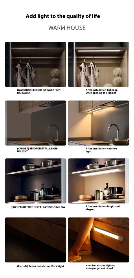 80cm Ultra-Thin LED Motion Sensor Cabinet Light with Magnetic and Sticker Features