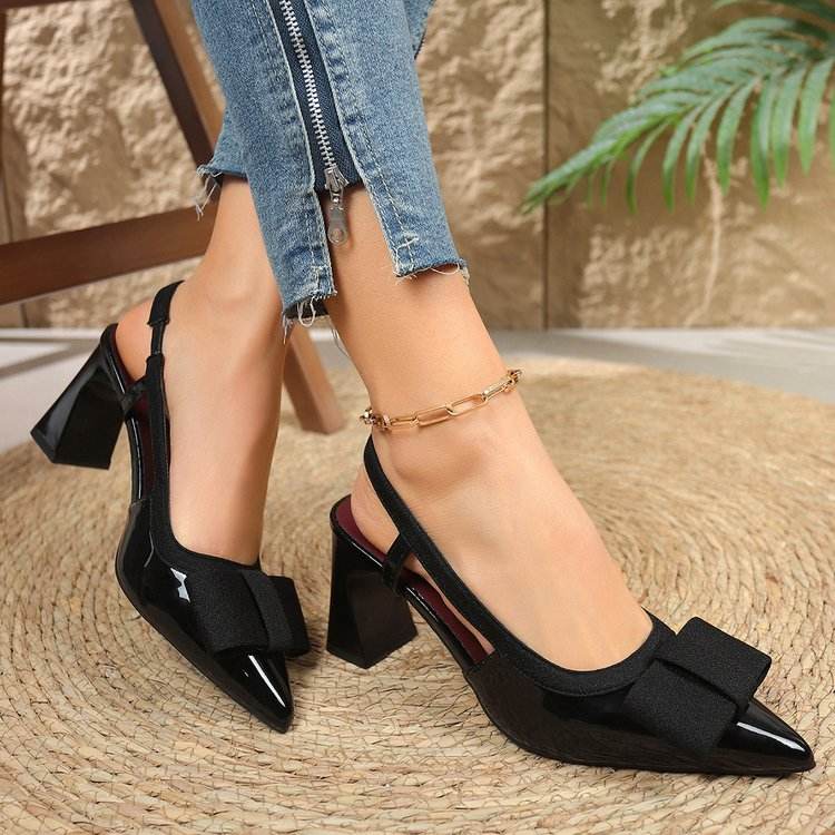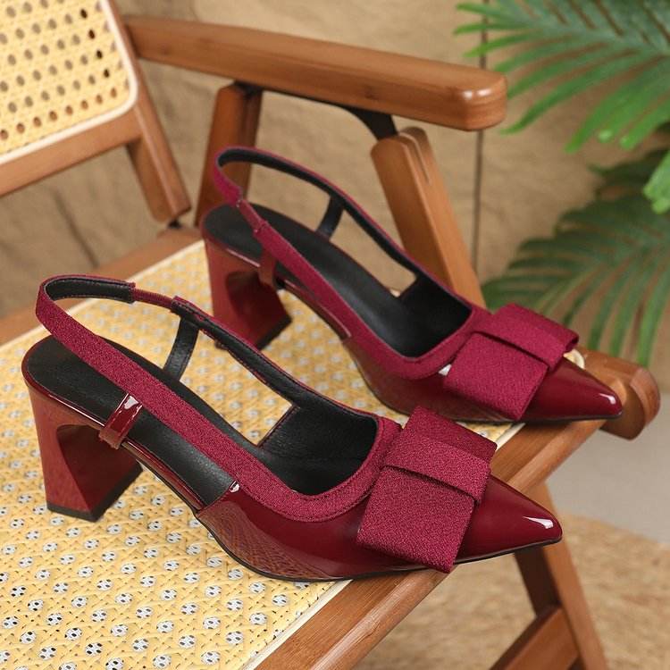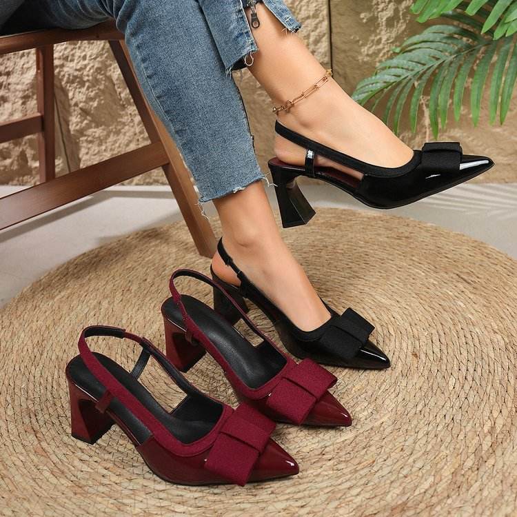 81935 Spring New Cross Border Foreign Trade Women's Shoes Bow Accessories Fashion Hollow Thick Heel Pointed Large Sandals