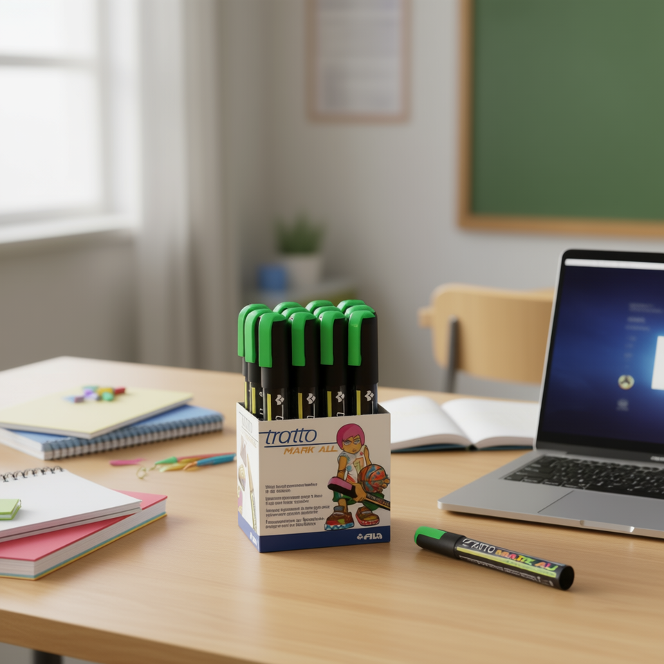 Tratto Mark All 12 Fluorescent Green Markers Boxed Set School Office Stationery Plastic Mexico Made
