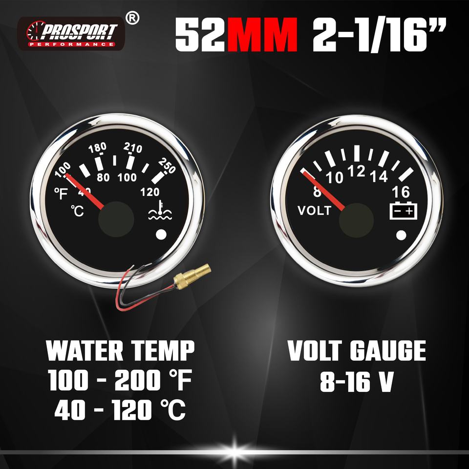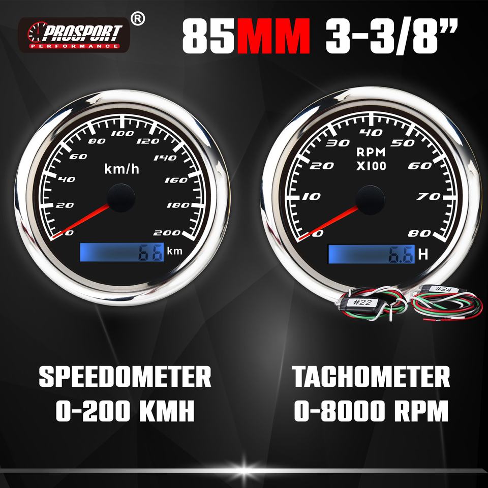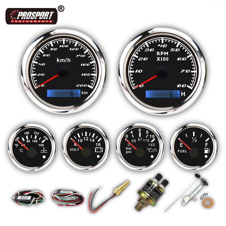 85mm 52mm Black 6 Gauge Set Waterproof LED Backlight Electrical Speedometer Tachometer Volt Water Temp Fuel Level