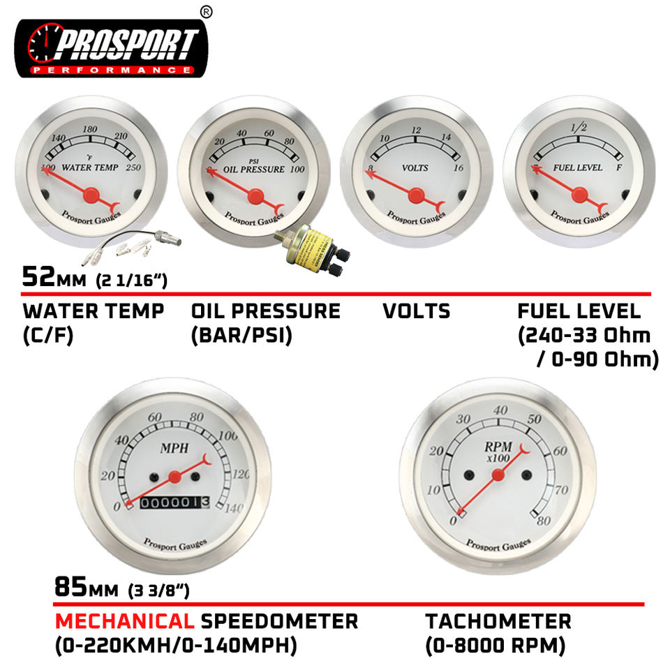 Speedometer Tachometer Oil Pressure Water Temp Volt Fuel LevelType